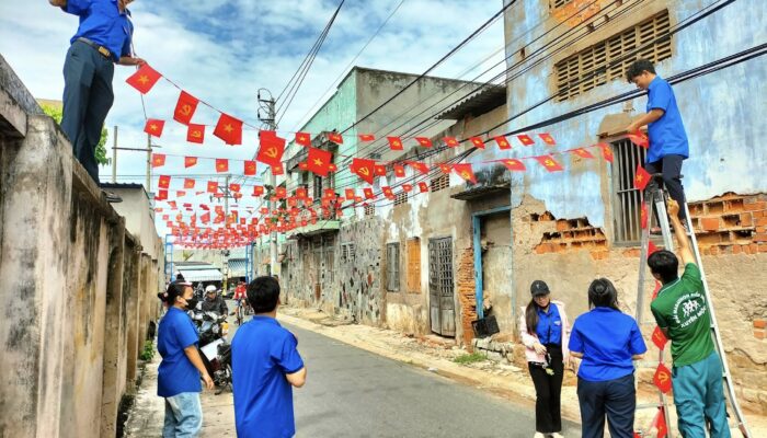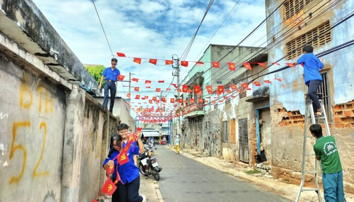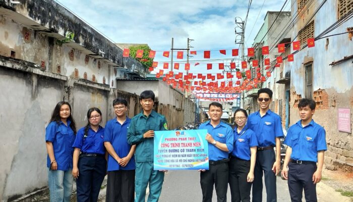Hòa trong không khí thi đua sôi nổi của tuổi trẻ cả nước, thiết thực chào mừng 80 năm Quốc khánh nước Cộng hòa Xã hội Chủ nghĩa Việt Nam (02/9/1945 – 02/9/2025), Đoàn Thanh niên phường Phan Thiết đã tổ chức thực hiện Công trình “Tuyến đường cờ Thanh niên” tại địa bàn Tổ dân phố 28 và 29.